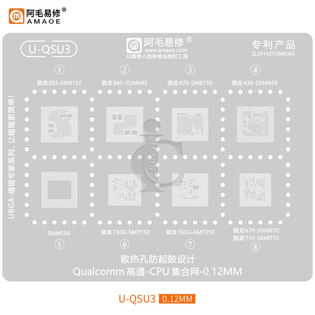 این شابلون برای ریبال (Reballing) و ترمیم آیسیهای پردازنده و تغذیه کوالکام سری Snapdragon طراحی شده و در مدلهای مختلف گوشیهای برندهای شیائومی، سامسونگ، هواوی، اوپو و ویوو کاربرد دارد.